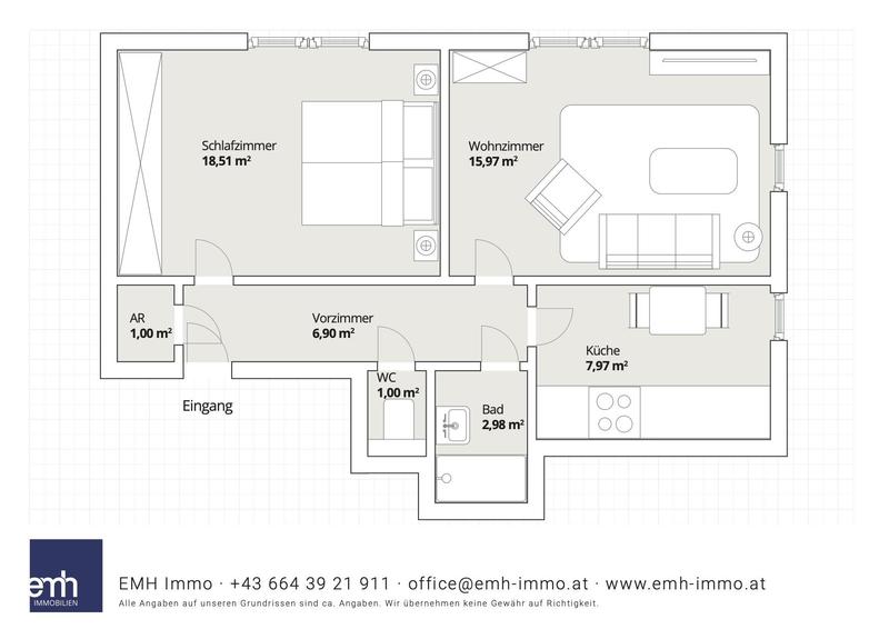 Aufteilung: 2 Zimmer, 1 Küche, gr. VR, Abstellraum, Badezimmer, Toilette